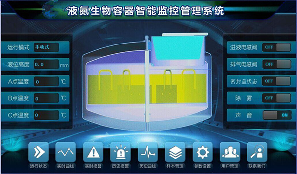 1、液氮罐監(jiān)控:實時采集低位、高位溫度,檢測液位高度;根據(jù)液位值和溫度值自動開關(guān)進(jìn)液電磁閥;發(fā)送報警信息。